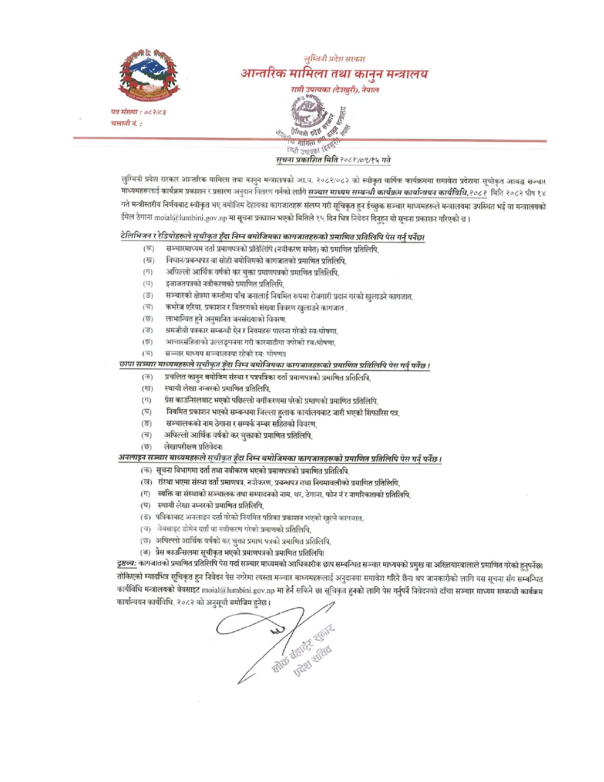 सञ्चार माध्यमहरूलाई सूचीकृत हुन आउने सम्बन्धी सूचना।