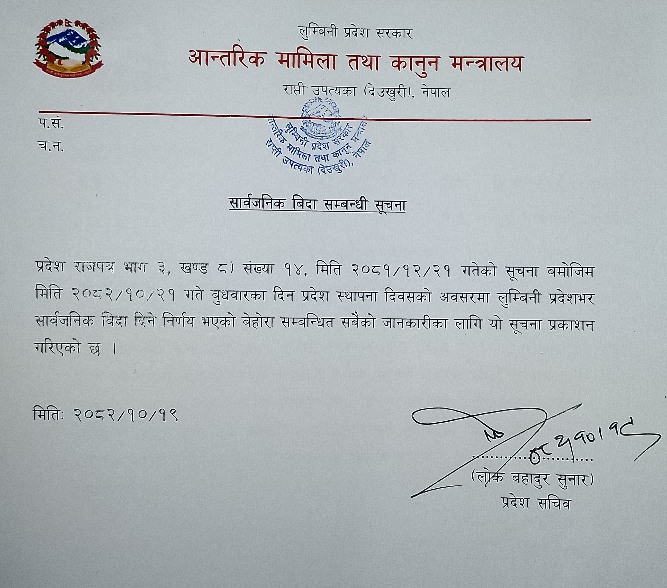 सार्वजनिक बिदा सम्बन्धी सूचना।